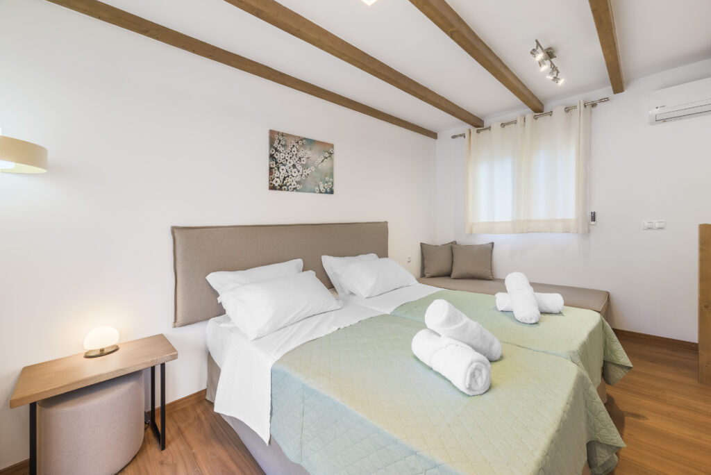 - Inbegriffen: Regelmäßige Reinigung (alle drei Tage) sowie frische Bettwäsche und Handtücher