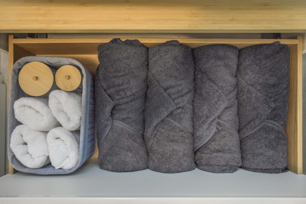 Ein Ort der Erfrischung und Ruhe: Starten Sie stressfrei in den Tag – Handtücher und alles Wesentliche für Ihr Wohlbefinden liegen bereit.