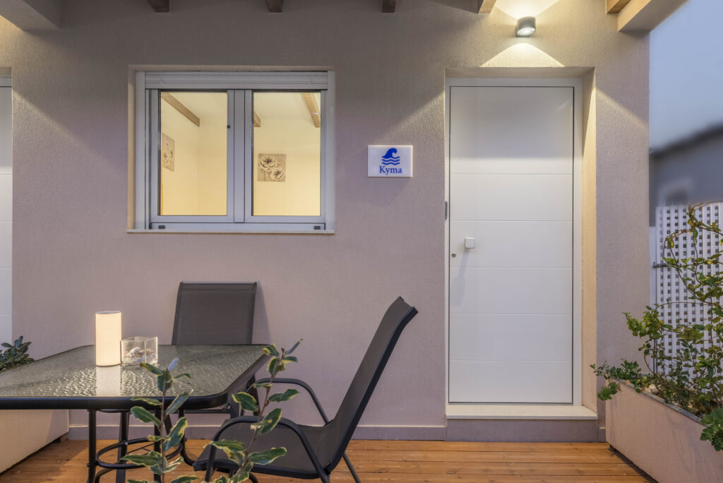 Ihre private Freiluftoase: Genießen Sie sonnige Morgenstunden oder romantische Abende auf Ihrer Terrasse mit Raum für Entspannung und Genuss.